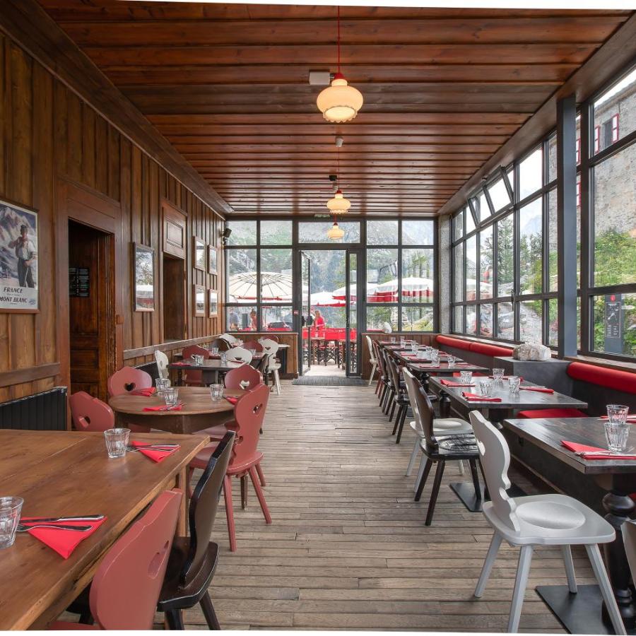 Pour vos repas, deux restaurants sont à votre disposition. Le Panoramique Mer de Glace mêle touches industrielles et esprit montagnard. Sa cuisine française se veut réconfortante, servie en cocotte ou en portions généreuses. Le Restaurant du Montenvers, quant à lui, propose une cuisine de montagne plus traditionnelle, avec une salle intérieure conviviale et une terrasse tournée vers les sommets. Le soir, seuls les résidents peuvent y dîner, renforçant l’impression d’intimité du lieu.